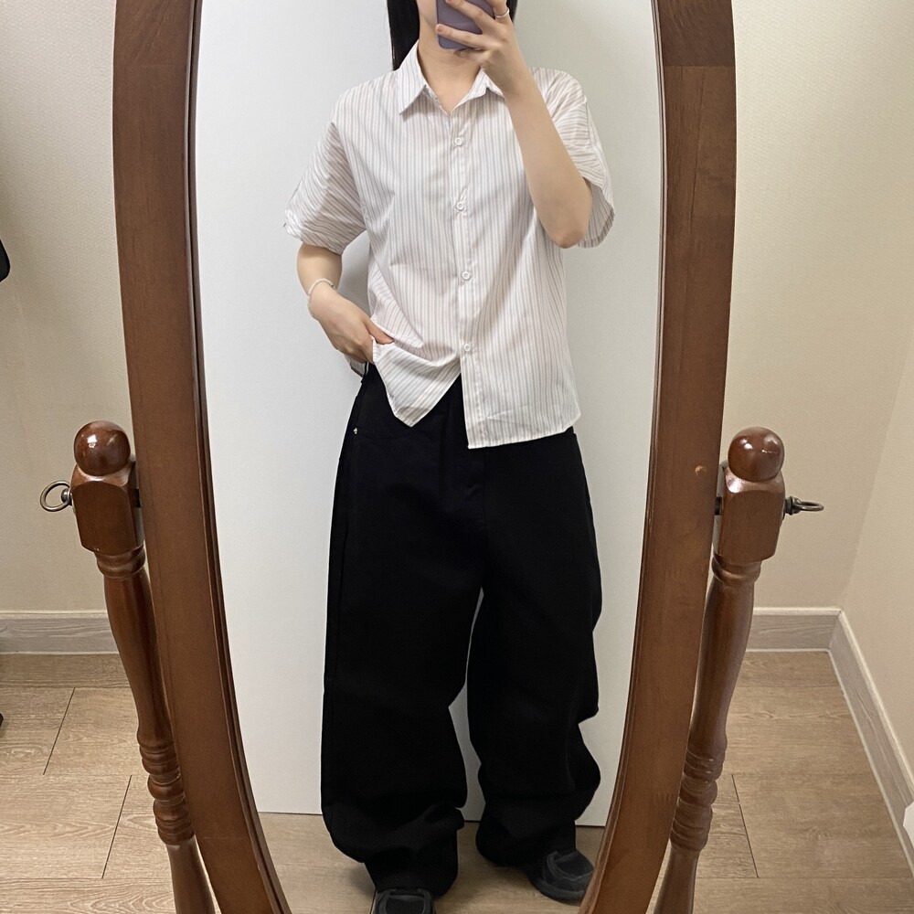 함께 코디한 팬츠는 [유니섹스 롱 와이드 코튼 팬츠]입니다